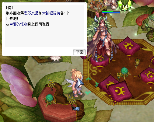 5、接下来就需要打怪了 必须装备妖精给你的 2块 含有魔力的石头(装饰品)才会掉落材料。